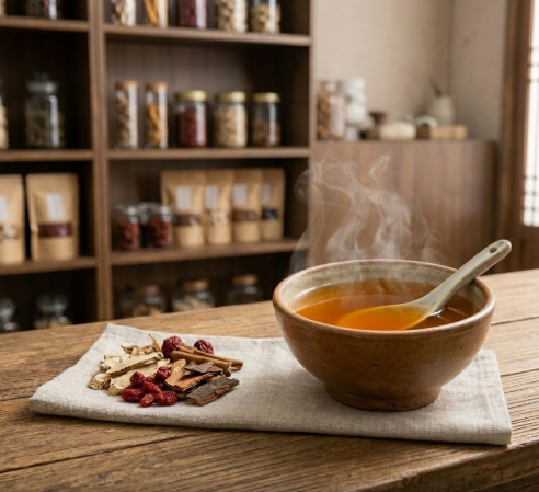황기는 땀 조절 약재로 알려져 있지만, 피부 자체의 기능을 단단하게 만드는 역할을 합니다. 피부 건조증도 결국 피부 기능 저하의 결과이기에 이 처방에서 중요한 위치를 차지합니다. 당귀·도인·홍화는 말초까지 혈액 순환을 도와 피부에 영양과 수분이 충분히 전달되도록 합니다.