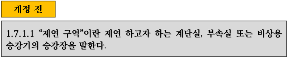 비상용 승강기가 뭐였죠? 화재가 났을 때 소방관이 승강기 타고 올라갈 수 있도록 비상용으로 설치해 두는 거였죠. 제연 구역에 원래 비상용 승강기가 포함되어 있었지만 앞으로 제연 구역은 계단실, 부속실 이렇게 두 가지만 포함이 된다는 것입니다.