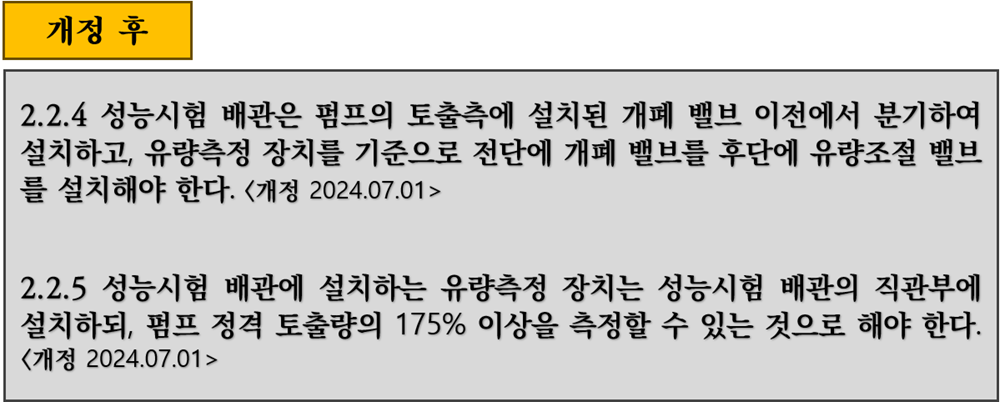 여기는 크게 중요한 내용이 아니기 때문에 어떻게 바뀐 것인지 한번 보겠습니다. 연결 송수관 설비의 배관은 다음의 기준에 따라 설치해야 한다. 주 배관의 구경은 100mm 이상의 것으로 할 것.