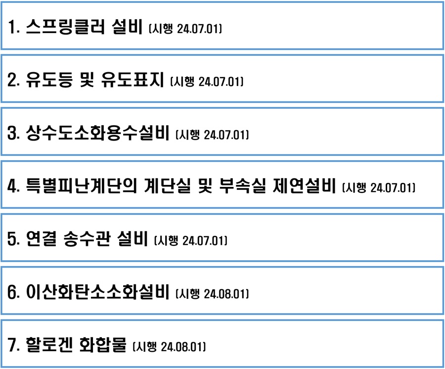 그리고 시험에 나올만한 부분을 알아보도록 하겠습니다. 이번 개정은 크게 보면 1번부터 5번 사항까지 2024년 7월부터 시행 6번부터 7번 사항까지 8월부터 시행되는 사항들입니다.