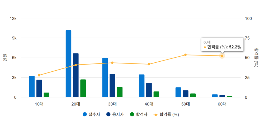 위험물안전관리자(기능사)_연령별 응시자 및 합격률