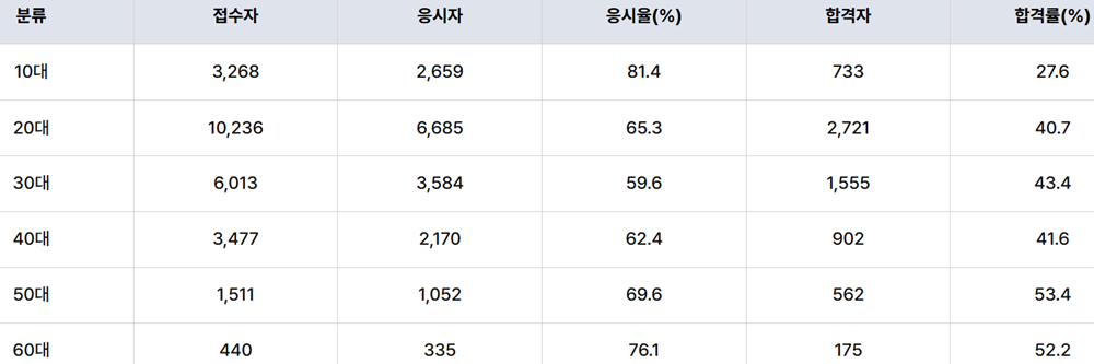 위험물안전관리자(기능사)_연령별 응시자 및 합격률