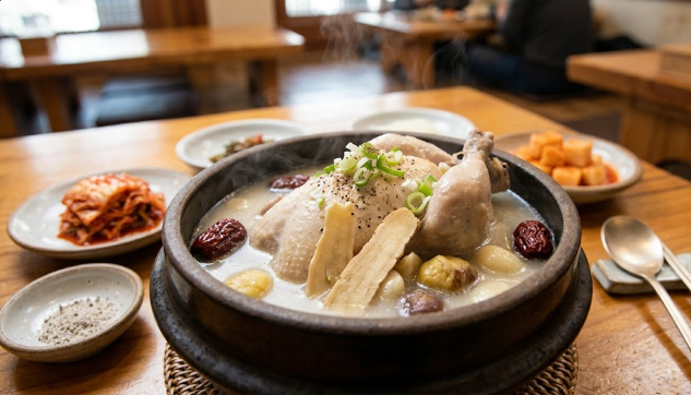 숙지황을 달여 육수를 만들고, 그 물로 삼계탕을 끓입니다. 국물이 진한 검은색을 띠며 단맛과 구수함이 어우러져 맛도 좋고 보약 효과도 탁월합니다. 복날 삼계탕에 활용하면 기력 회복에 효과적입니다.