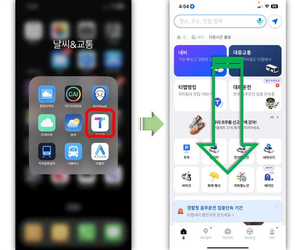 티맵 설치(애플스토어) 이동