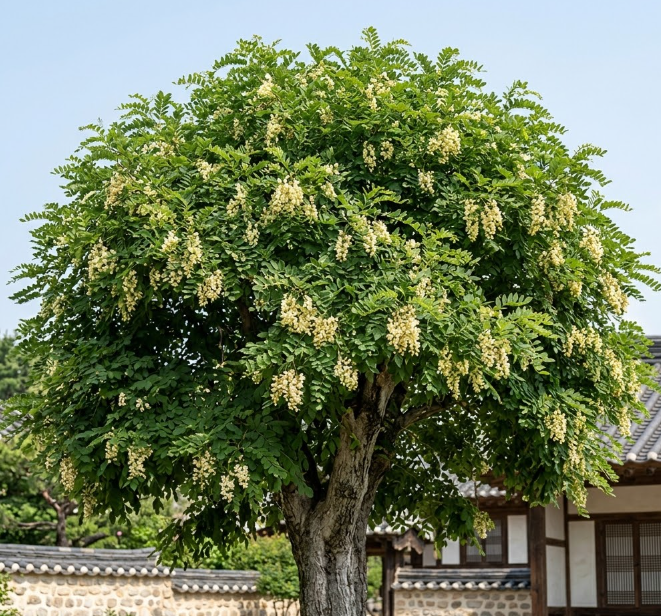 중국에서는 회화나무를 '학자수(學者樹)'라 부르며 오랫동안 특별하게 여겨 왔습니다. 조선시대에도 과거 시험에 합격하면 집안에 이 나무를 심었다는 기록이 있을 만큼, 학문과 길운을 상징하는 나무입니다. 악귀를 물리친다는 속설도 있어 중국에서는 어딜 가나 가로수로 즐겨 심습니다.