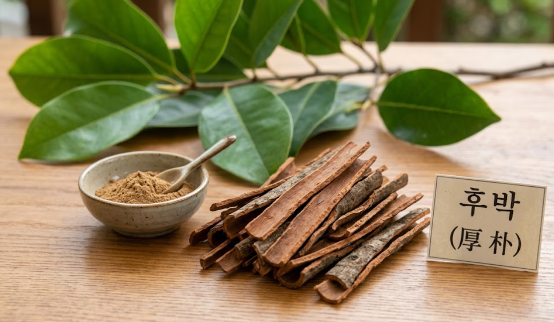 약국에서 소화제를 사면 뒷면 성분표에 한번쯤 눈이 가신 적 있으신가요? 생약 성분 소화제 대부분에 공통으로 들어가는 약재가 있습니다. 바로 **후박(厚朴)**입니다. 특히 가스가 차고 더부룩할 때, 여행 중 갑자기 소화가 안 되거나 변비가 생겼을 때 탁월한 효과를 발휘하는 약재입니다.