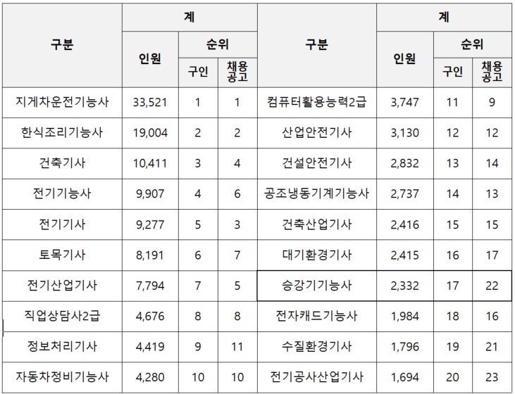 국가기술자격증관련 채용 공고 건수(2023년 기준)