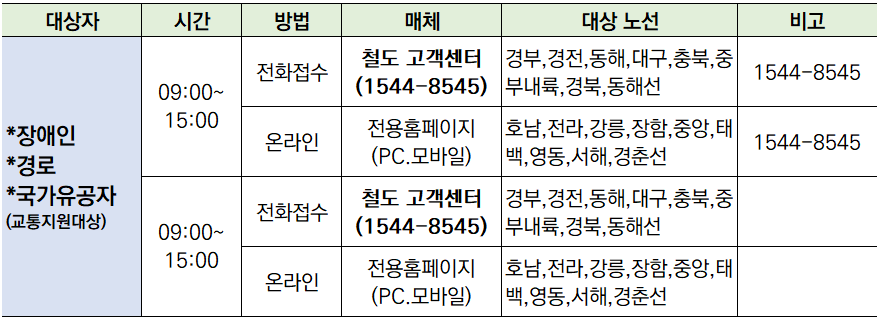 • 예매 홈페이지(www.letskorail.com)는 25.01.03(금)14시부터 운영합니다.